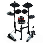 Электронные барабанные установки включают в себя несколько пэдов, тарелки и педали. Их можно доукомплектовать за счет дополнительного оборудования. Электронные барабанные установки компактны, просты в установке и бесшумны. Они занимают значительно меньше места, чем акустические, поэтому их часто размещают дома или в небольших студиях. Совместимы с наушниками
