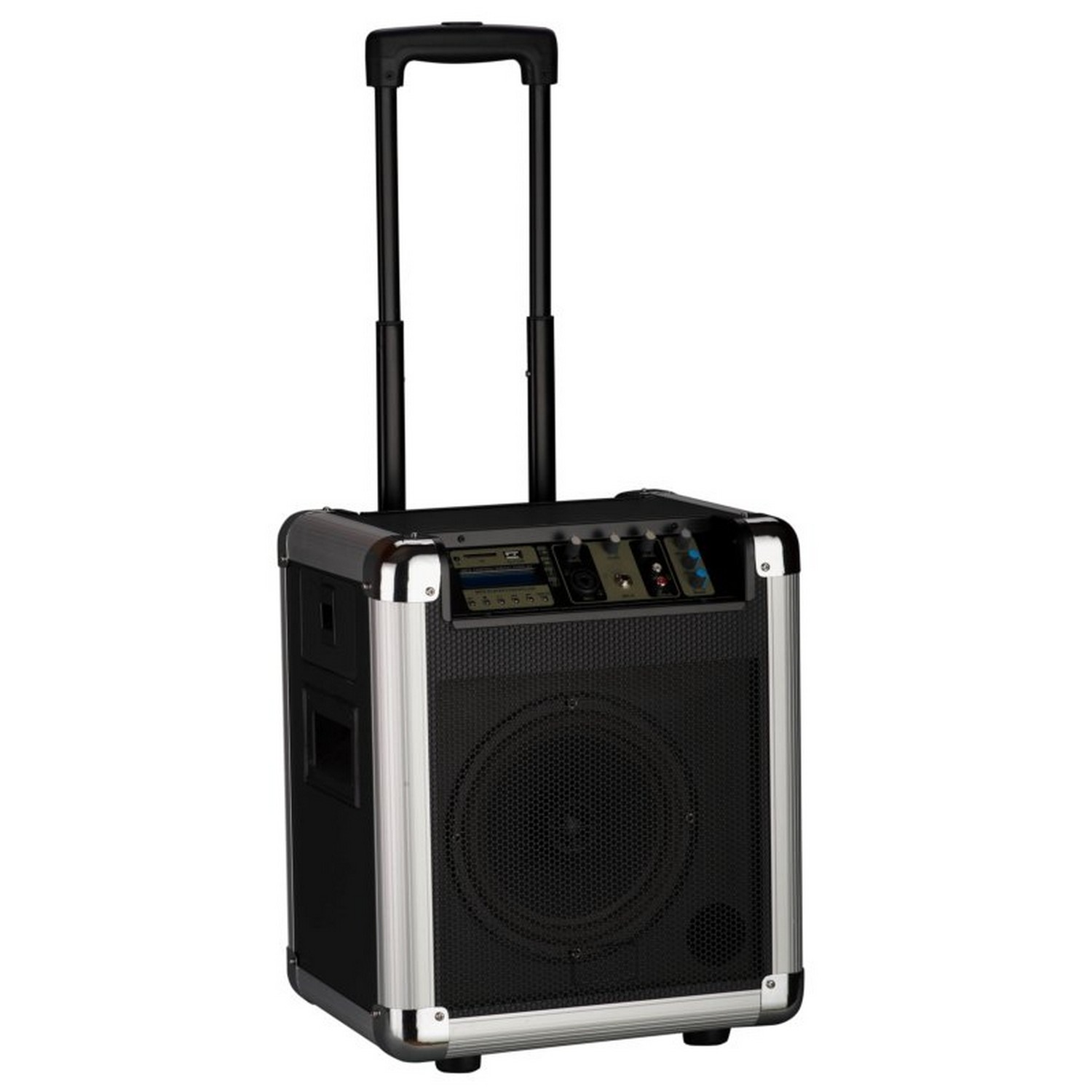 Колеса и телескопическая ручка для удобства транспортировки. Двухполосная акустическая система.