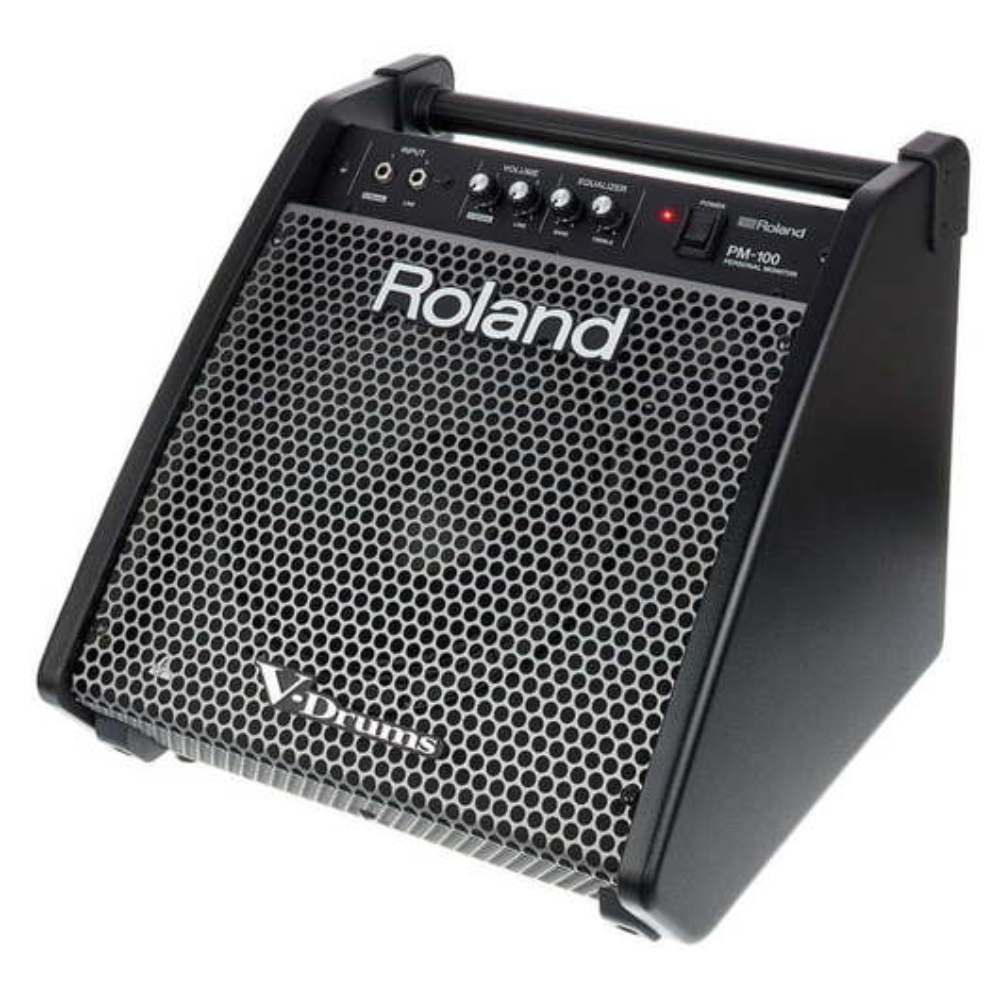 PM-100 оснащен встроенным 2-канальным микшером, который превращает его в самостоятельный мини-пульт. Один канал — «V-Drums In» — оптимизирован для прямого подключения модуля электронных барабанов. Второй — линейный вход с двумя разъемами (1/4" и 1/8" TRS) — позволяет подключить смартфон, планшет, ноутбук или драм-машину для воспроизведения фонограмм, кликов или обучающих треков. Вы можете независимо регулировать громкость барабанов и фоновой музыки, создавая идеальный баланс для репетиции. Дополнительный контроль обеспечивает 2-полосный эквалайзер с отдельными регуляторами НЧ и ВЧ, позволяющий скорректировать звучание под акустику помещения и личные предпочтения